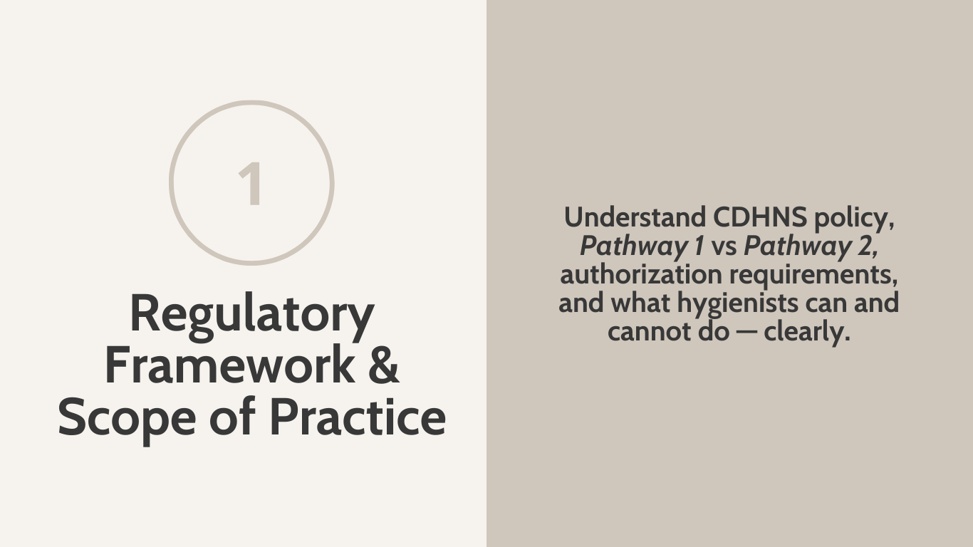 • RDHs who want to expand scope confidently and compliantly