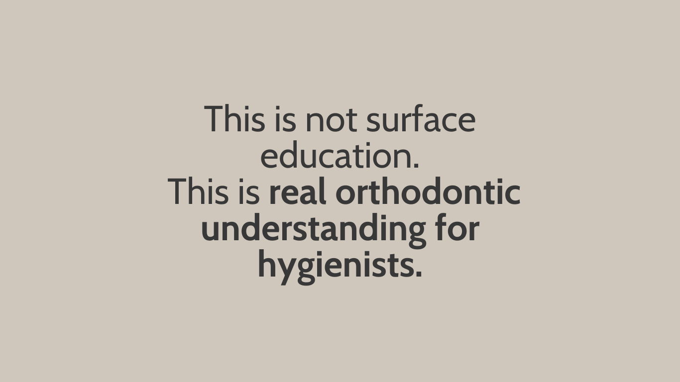 This is professional orthodontic education designed specifically for the RDH scope.